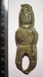 Images of people on objects are extremely rare in Finnish culture (at the time of the Vikings). Usually only animals, such as birds, bears, wolves and horses are depicted. They are only found among the Finnish (Finno-Ugric) tribes that lived far away in the east of modern-day Europe, sporadically in the – present – Baltic area. The depicted human-like figures are probably amulets or images of shamans. So, either these kinds of objects were used daily, or only during special occasions such as rituals, whether or not performed by a shaman within the tribe.