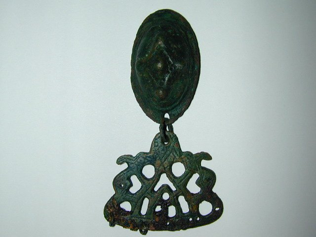 This bird pendant – 66 mm from breast to tip of tail and 12.29 grams – comes from northeastern Europe and can be considered Finnish. Types derived from it have been found as far away as Lapland. Considering the area from which it comes, the bird may represent a whooper swan.