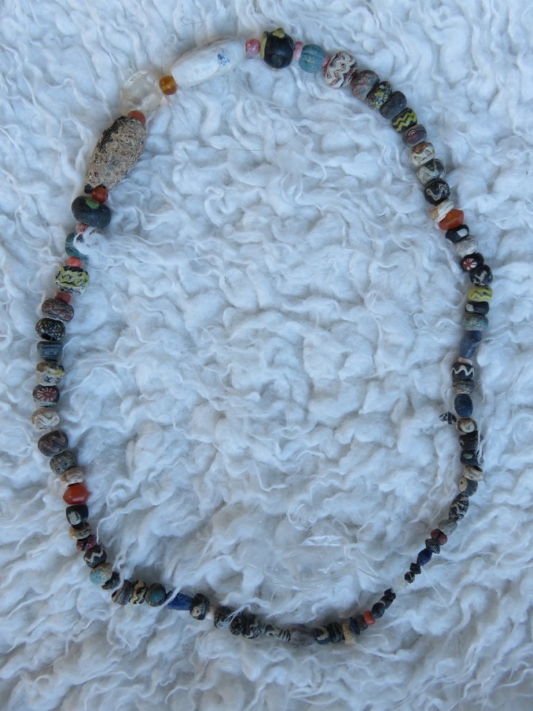In today’s consumer market it is difficult to appreciate the value that beads had in historical periods. Every bead, regardless of method of manufacture was the result of great labour, whether polished from a pebble of carnelian, wound from glass produced from sand and colored with minerals extracted from the earth or made from glass hard natural mollusks.