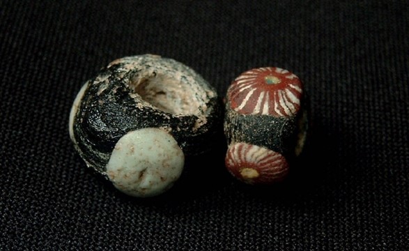 Link to an investigation on segmented, metal-foiled glass beads and blown,