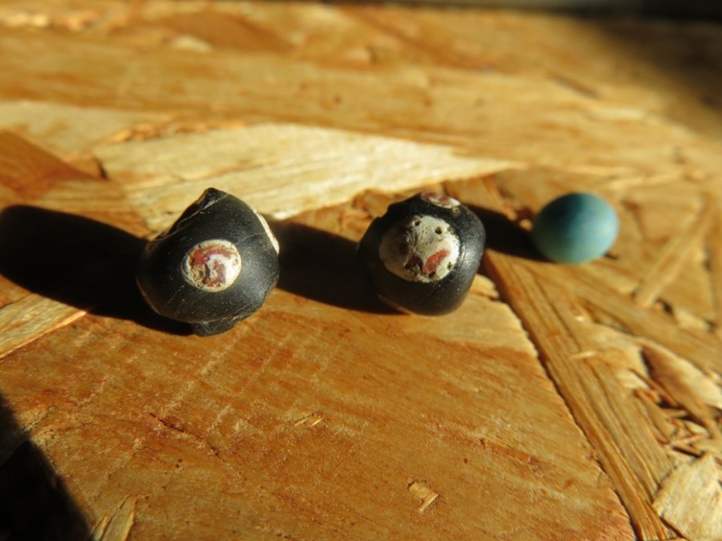 Finally, the beads below also come from the area around Lake Ladoga in Russia. The two beads on the left are 10 mm in diameter and weigh 1.08 and 0.92 grams respectively. The blue bead measures 9 mm in diameter and weighs 0.45 grams.