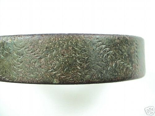 These bronze bracelets were found near Lake Ladoga in northwestern Russia. The one below measures 60 mm in width and weighs 18.77 grams.