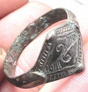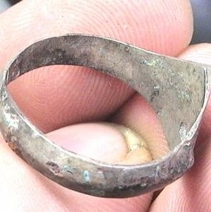 The ring below comes from the same area and is set with a blue stone. It measures 27 mm at its widest point and weighs 3.50 grams.