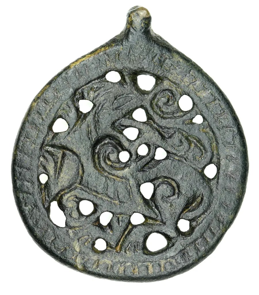 Recently I was able to add an extremely interesting piece to my collection: a bronze pendant from – presumably – the 12th century, found in England.