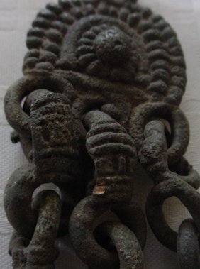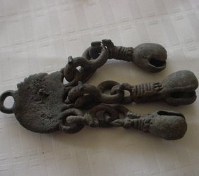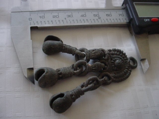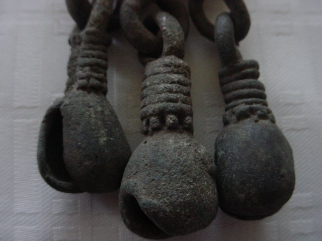 The dangling bells (sometimes duckfeet on similar objects) had the function to chase away evil spirits.
