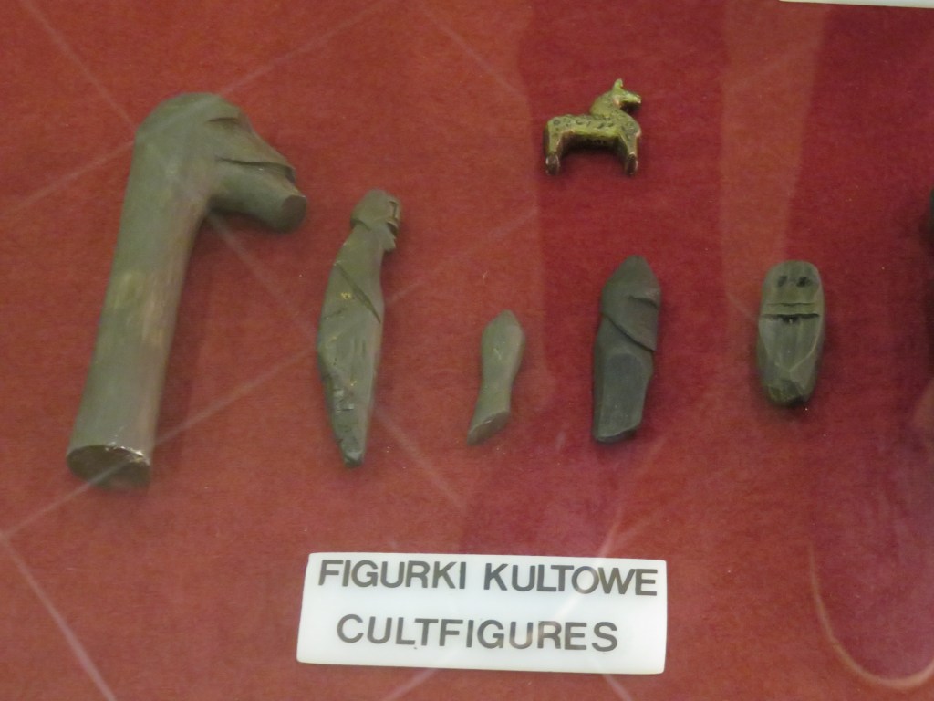 The type of head reminds of the threedimensional heads on wooden – idol ? – figures also found near Staraja Ladoga and – more vaguely – the threedimensional head on a dagger known for ritual killings from a grave at Gnëzdovo. (see for both images – Duczko, W., Studies on the Presence of Scandinavians in Eastern Europe). Also see wooden objects found at the town of Wolin in Poland.